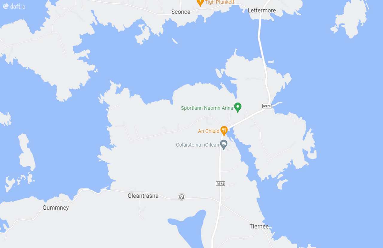 2.7-acre site for sale. Great opportunity to develop a stunning residence in a fantastic location, right in the heart of Connemara. Served by the R374, the site is a short drive from Lettermore amenities and 50 minutes to both Galway City and Clifden respectively.